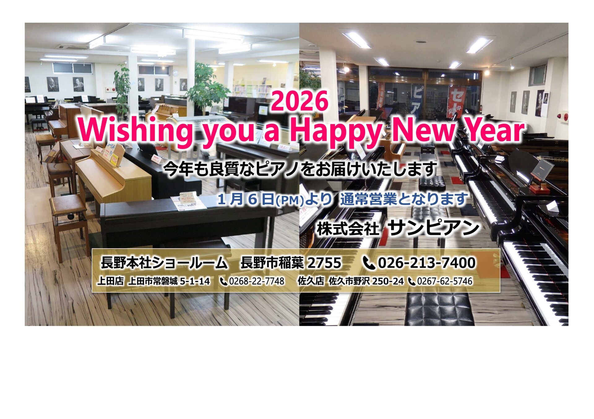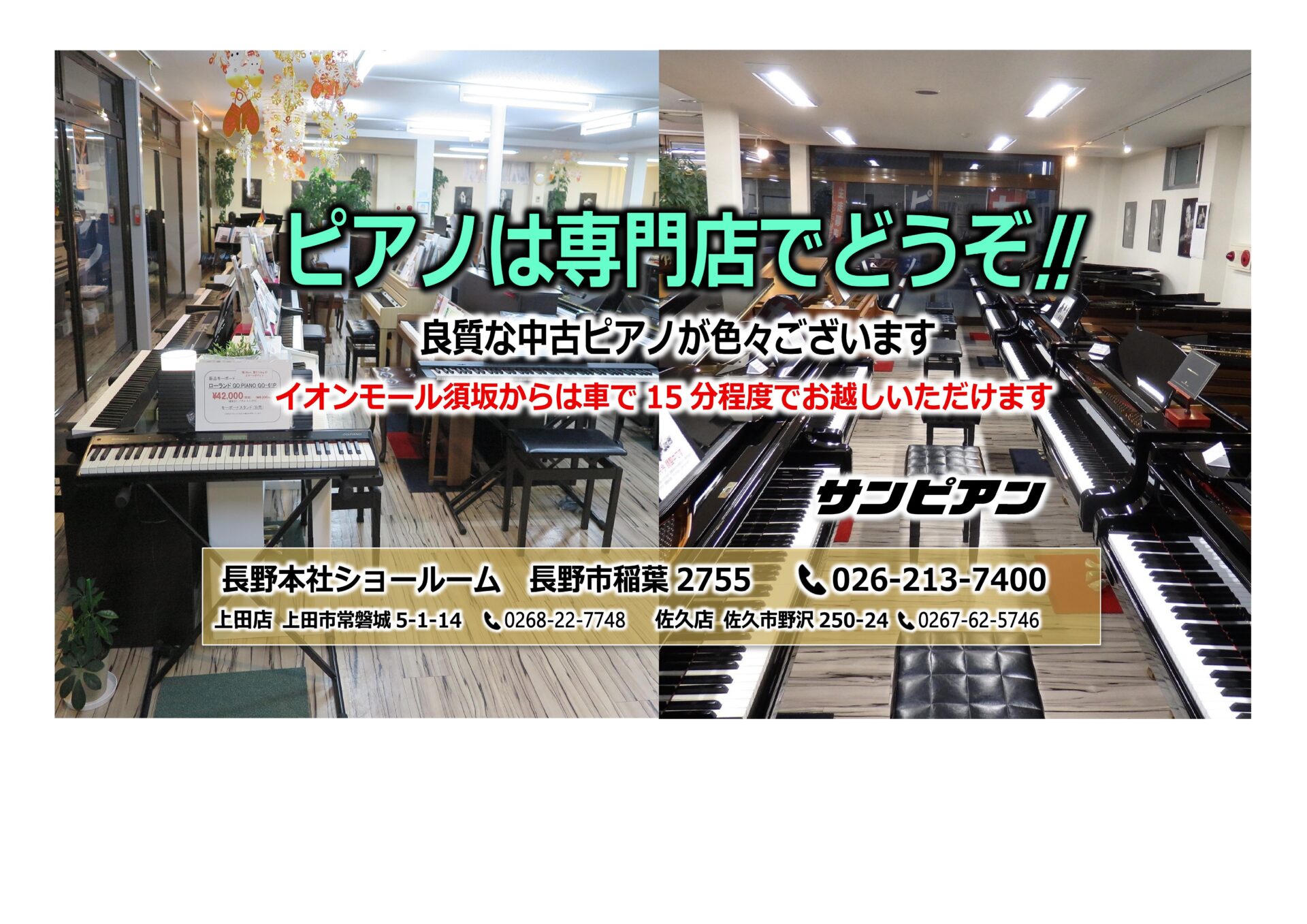 長野県内最大展示台数のピアノ専門店