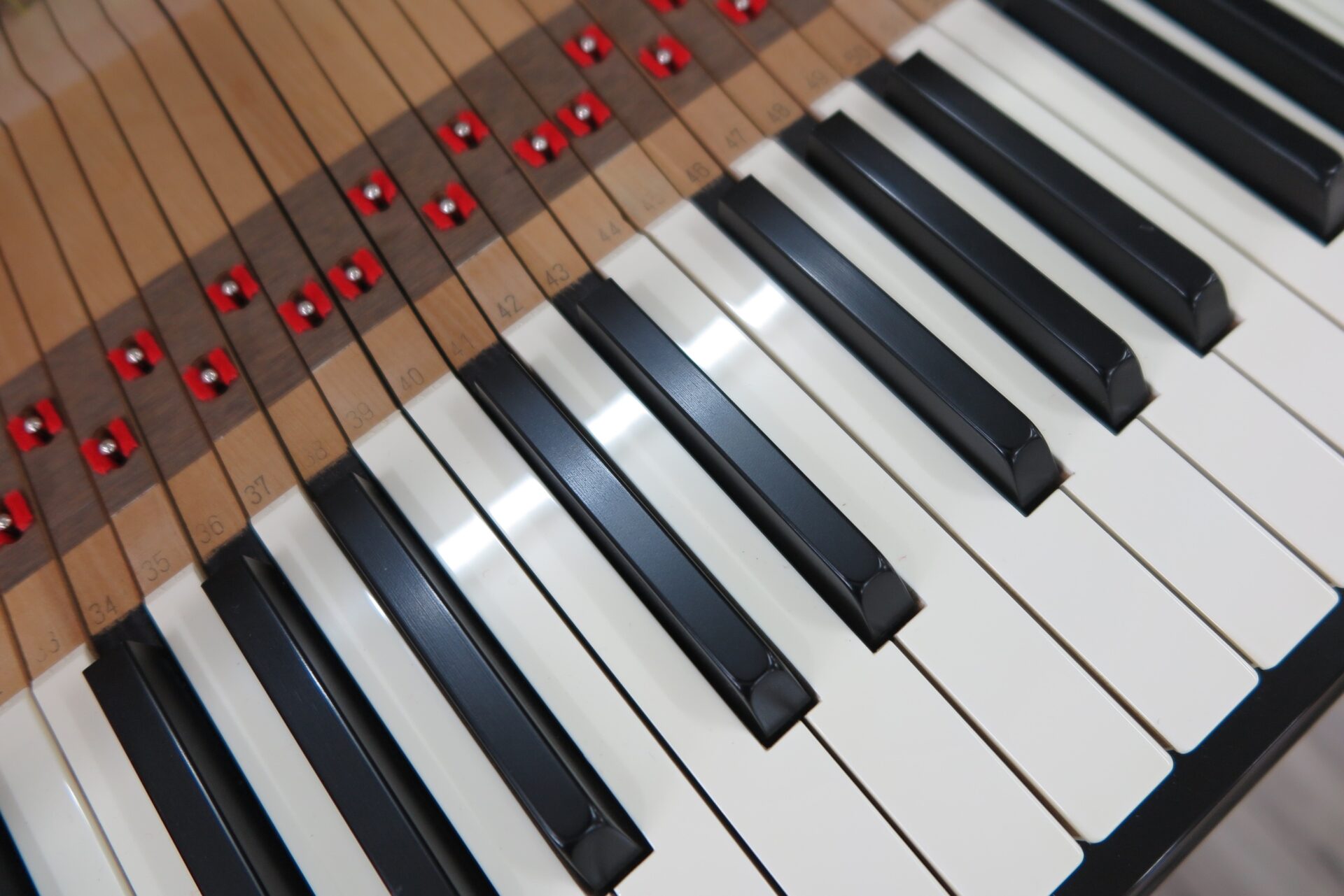 中型モデルながらグランド同様の鍵盤蓋と譜面台。ファインアイボリー白鍵・ファインエボニー黒鍵を搭載し、ハンマーはオールアンダーフェルトを採用した高年式のハイグレードモデル