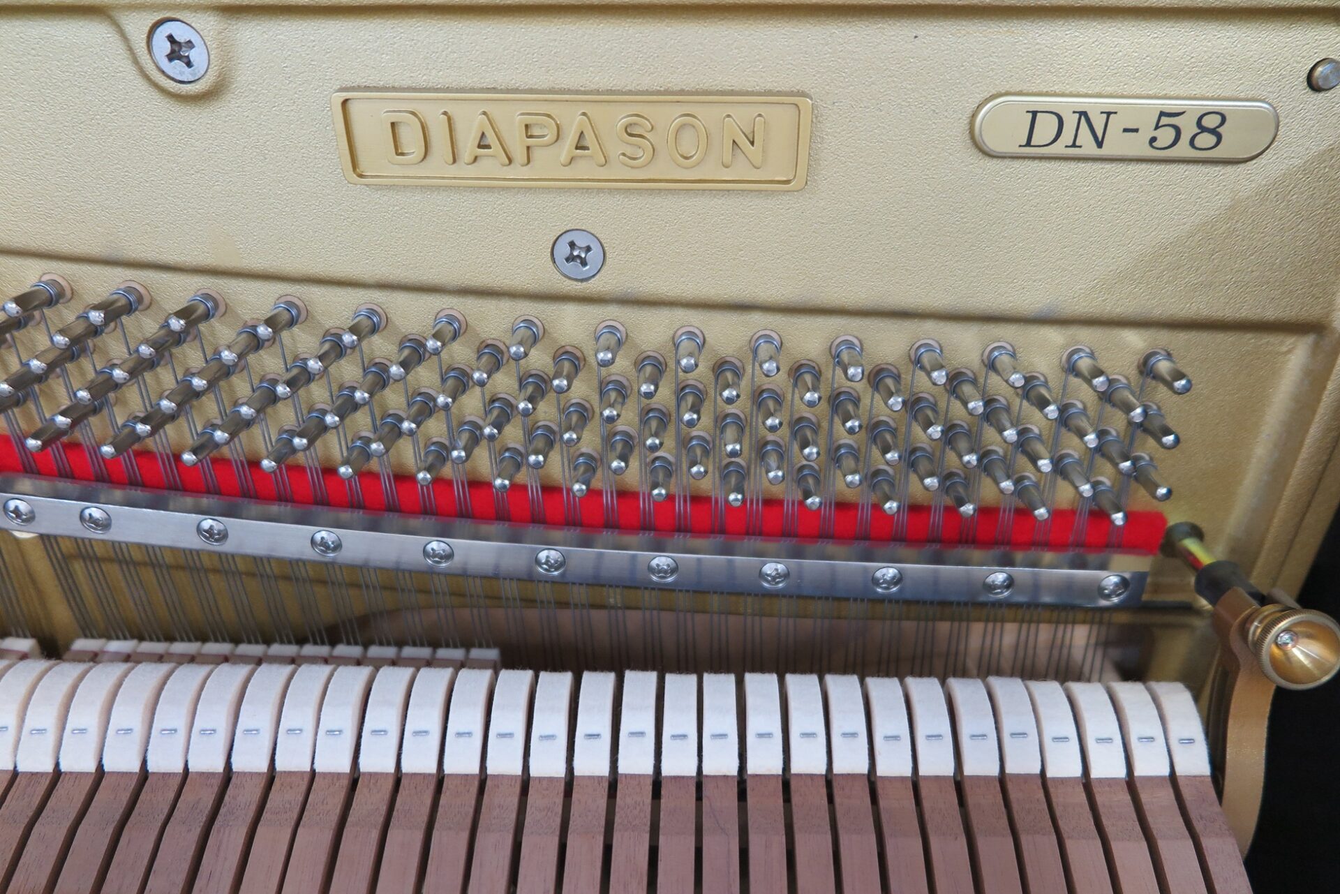 DN-58は中立的で美しい音色、深みのあるダイナミックな低音が特徴のピアノで、英RG製アンダーフェルト、独レスローワイヤーの採用、スローダウン鍵盤等品質の良いピアノです。